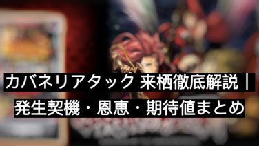 パチスロ稼働日記 カバネリアタック 来栖徹底解説|発生契機・恩恵・期待値まとめ パチスロ甲鉄城のカバネリに搭載された「カバネリアタック来栖」を解説。突入契機、恩恵、期待枚数や立ち回りのポイントを詳しく紹介します。 2025.08.25 パチスロ稼働日記 崖っぷち20代の人生再建計画